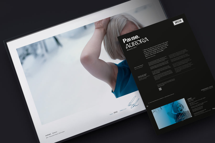 For the ultimate collector, our A2 giclée prints are hand-signed by the artist and then hand stamped in our studio. After being professionally printed in London, we arrange a suitable location for signing - usually our studio, the artist's home or recording studio.